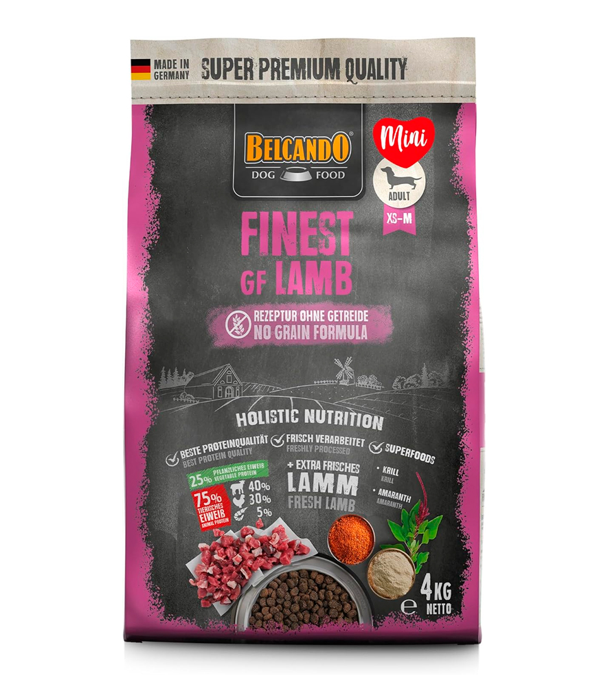 Una alternativa nutricional para perros que tienen intolerancia al gluten o a los cereales. En esta receta los cereales se sustituyen por amaranto de alta calidad. El amaranto es una de las primeras plantas útiles utilizadas por el hombre y ya era muy apreciado por los aztecas debido a sus propiedades energéticas. Gracias a la combinación con kril –que es una gran fuente de nutrientes como los ácidos grasos omega 3–, se consigue una fórmula perfectamente equilibrada. Con mucha cantidad de cordero fresco y, por ello, delicioso, que se tolera muy bien. Salsa : cuando se mezcla con agua caliente, se forma una salsa sabrosa.