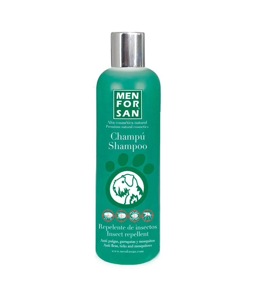 Champú para perros con CITRONELA Y GERANIOL, repelentes naturales muy efectivos para eliminar durante el proceso de lavado pulgas, garrapatas, ácaros y piojos. También previene posteriormente al proceso de lavado de picaduras de mosquitos.