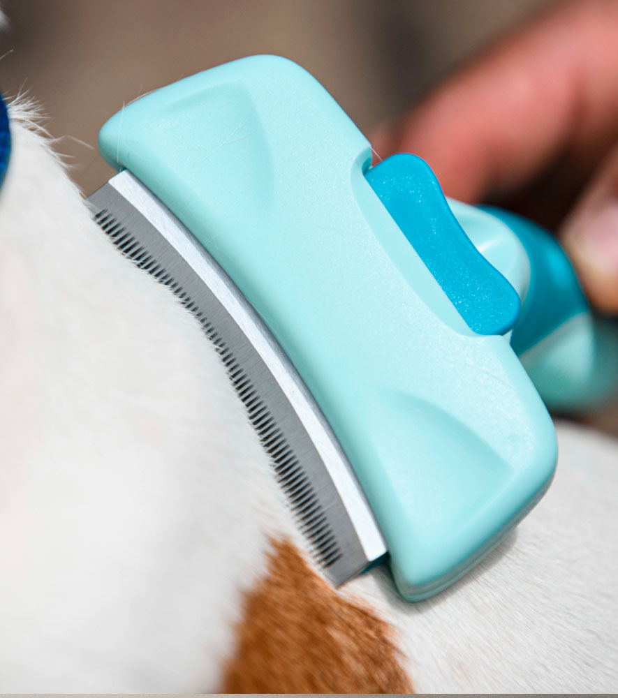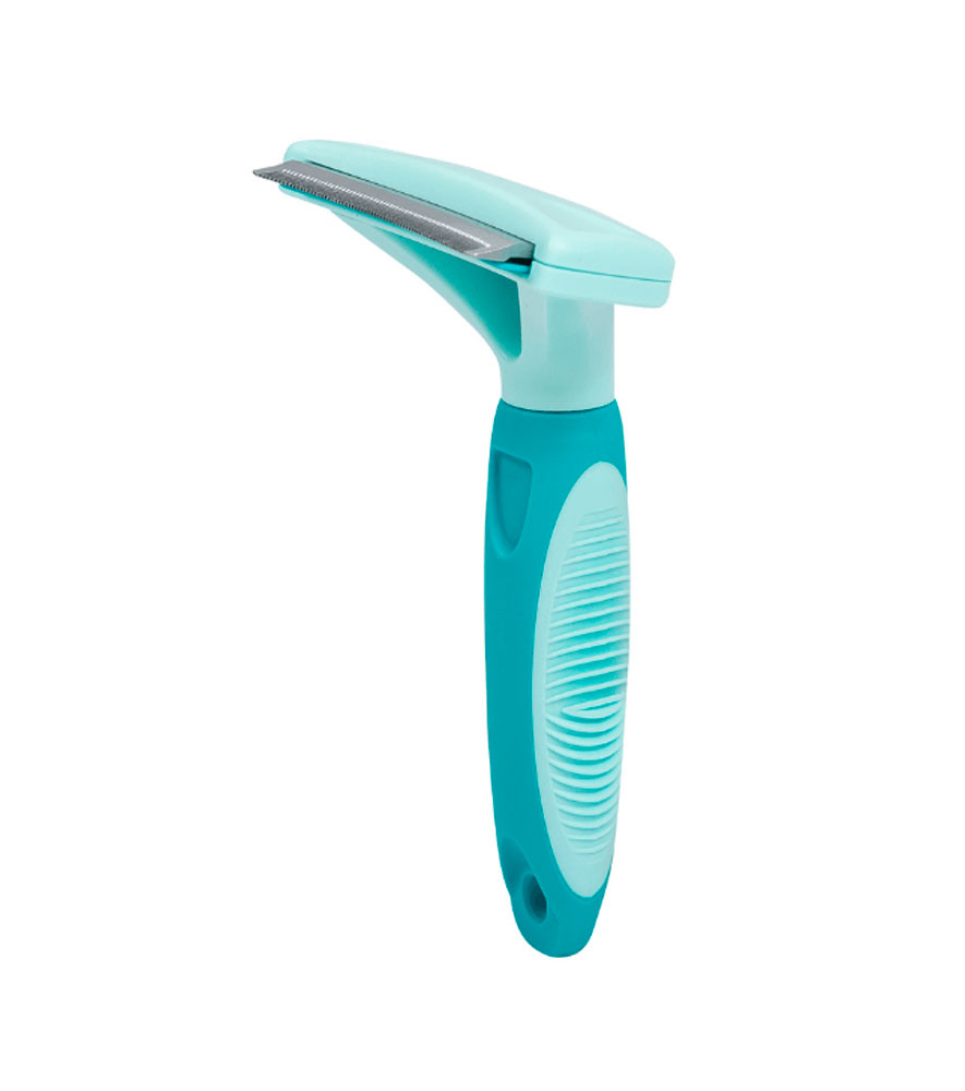 Ideal para las temporadas de muda, este deslanador está diseñado para eliminar eficientemente el pelo muerto y suelto, evitando que se acumule en el pelaje de tu mascota o en tu hogar. Mantén a raya la cantidad de pelo en tu casa y deja que tu perro o gato luzca un pelaje sano y brillante.