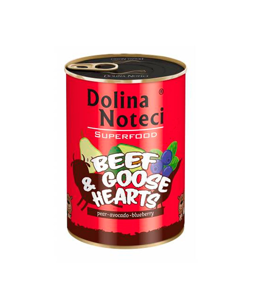 Dolina Noteci Super Food de Buey y Ganso es un perfecto alimento húmedo elaborado de manera específica para el buen funcionamiento del sistema inmune en los perros, gracias a su contenido de 40% de carne de buey, además de 40% de carne de ganso con fósforo , hierro y manganeso . Disponible en envase de 800 g.