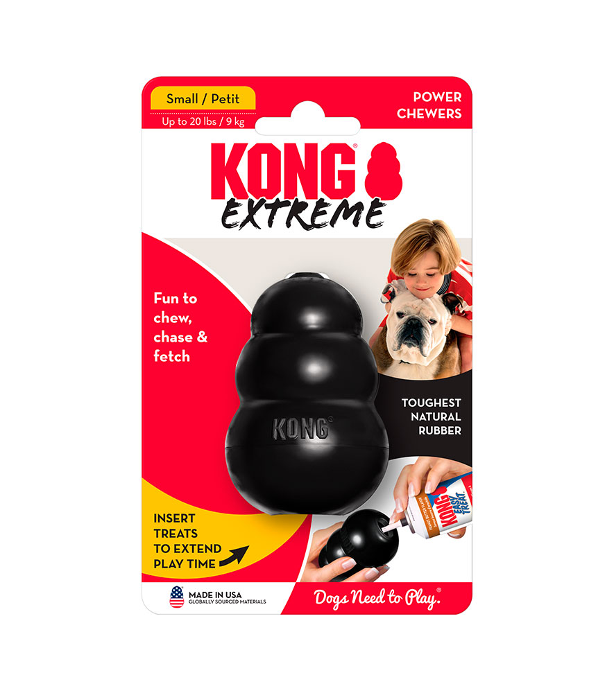 El KONG Extreme está diseñado para los masticadores más tenaces, aporta beneficios y ayuda a satisfacer las necesidades instintivas de los perros. La exclusiva fórmula de caucho ultraduradero completamente natural de KONG está diseñada para masticadores decididos, y sus rebotes erráticos satisfacen las necesidades de juego de cualquier perro. ¿Quiere prolongar el tiempo de juego? Rellénelo con tentadores trozos de alimento balanceado y colóquele un toque de mantequilla de maní para que sea aún más atractivo. Para sumar más diversión, agregue KONG Snacks y cubra con KONG Easy Treat. Rellénelo y congélelo para un reto más duradero.