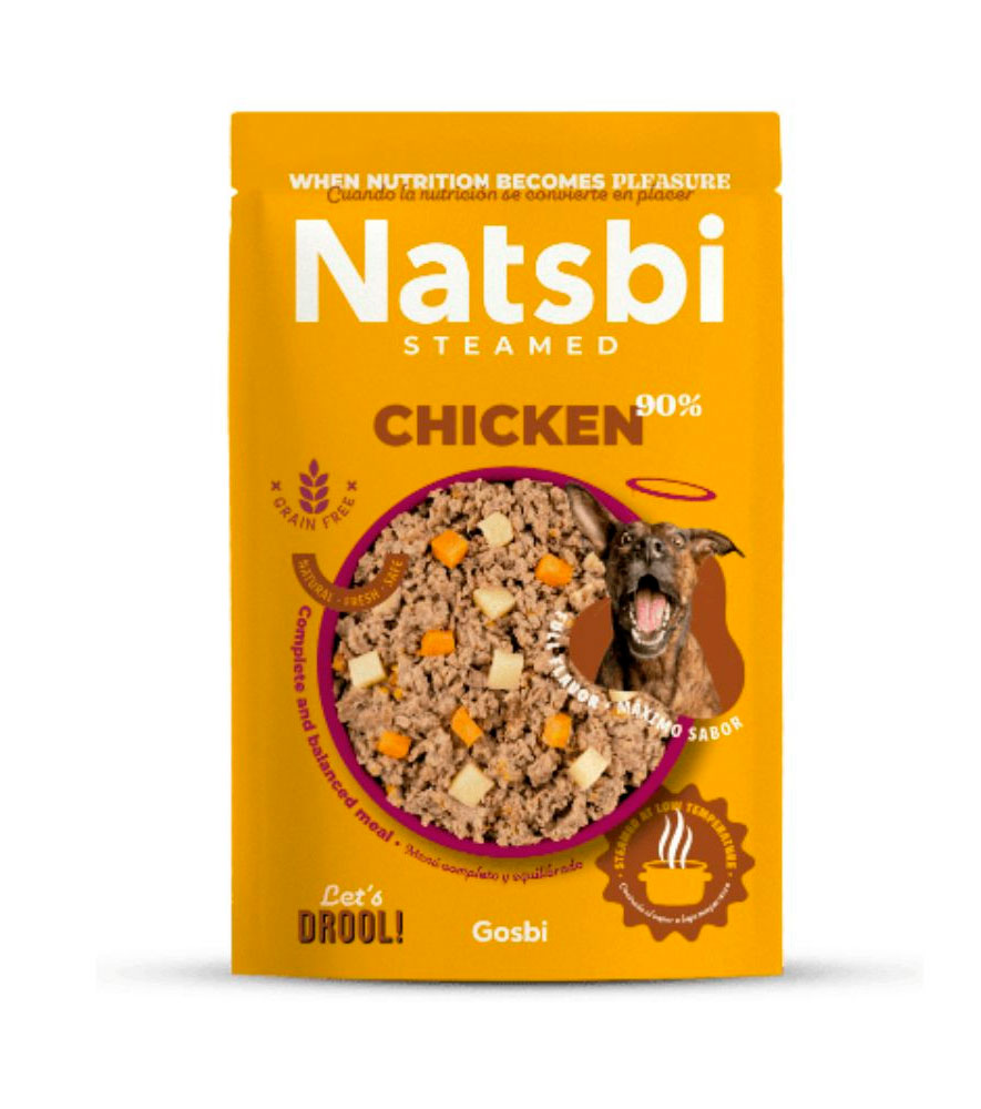Natsbi Steamed Pollo ofrece una receta cocinada al vapor con ingredientes naturales y equilibrados, perfecta para una dieta sana, sabrosa y de alta digestibilidad.