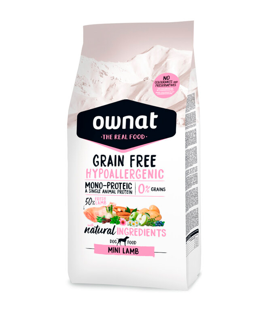Si deseas ofrecerle a tu mascota una alimentación altamente nutritiva que se adapte a sus altos requerimientos para que se mantenga activa y fuerte, debes ofrecerle el pienso para perros Grain Free Hipoalergénico de Ownat. Cuenta con una fórmula especial con un delicioso sabor a cordero fresco mezclado con frutas y verduras para crear un sabor irresistible que adorará todos los días.