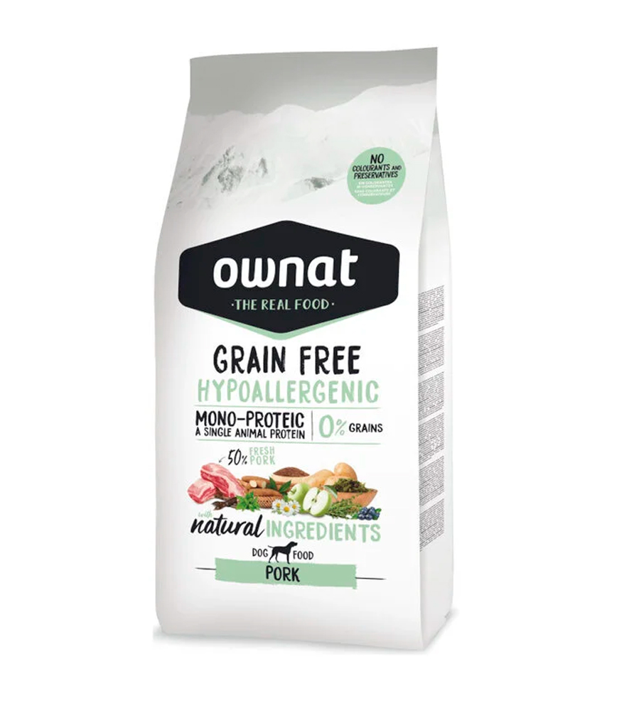 COMPOSICIÓN OWNAT GRAIN FREE HIPOÁLERGENICO DE CERDO PARA PERROS: