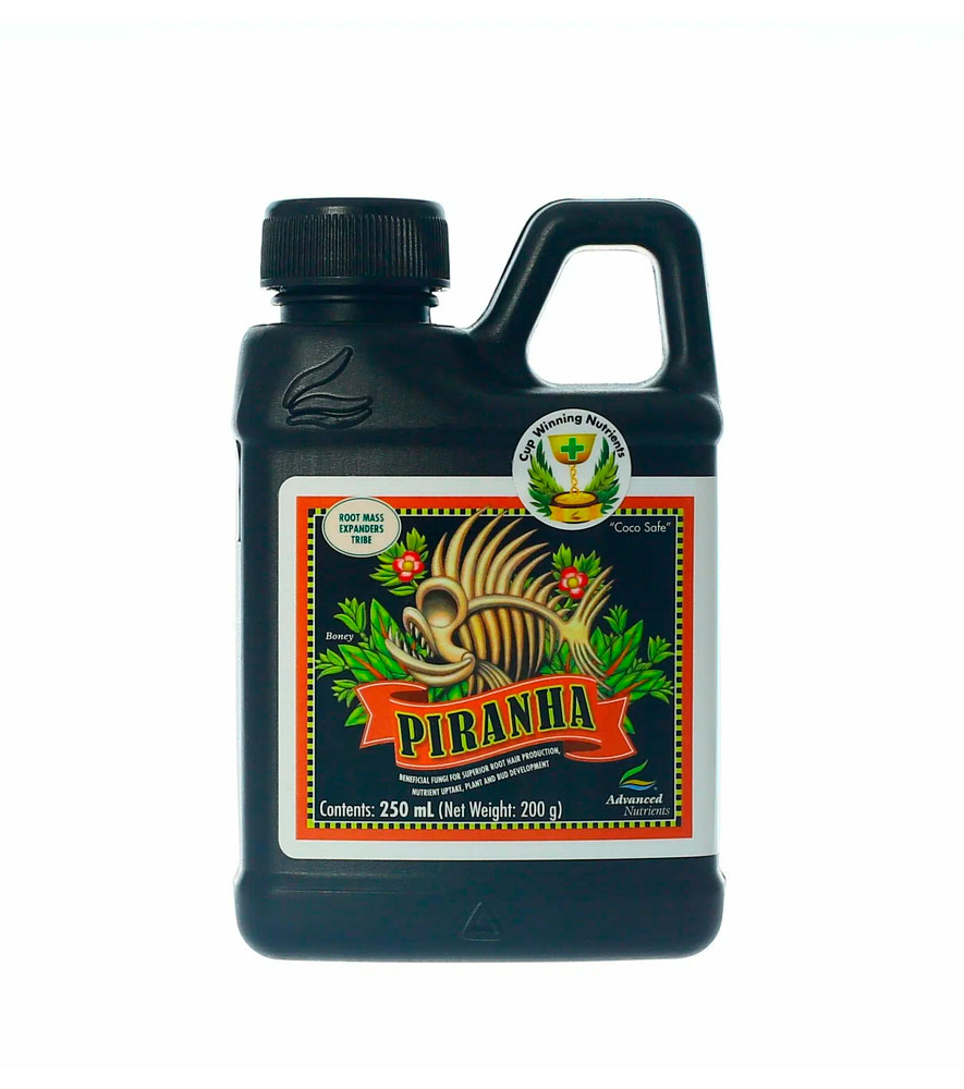 Piranha es un estimulador del sistema radicular perfecto para la fase de crecimiento, el cual utiliza hongos beneficiosos para las plantas con el objetivo de mejorar el crecimiento y la salud de las plantas de cannabis. Entre estos hongos se encuentran los tricodermas y micorrizas. Los hongos se alimentan de la planta y a su vez la planta del hongo, con lo que hacen una simbiosis perfecta, mejorando significativamente la absorción de agua y nutrientes del suelo, lo que se traduce en un crecimiento más vigoroso y una mayor resistencia a las adversidades.