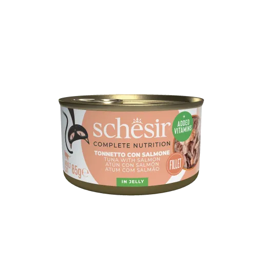 A diferencia de otros productos completos, Schesir garantiza comidas auténticas de filetes de atún en gelatina, cocidos al vapor y seleccionadas cuidadosamente, y delicioso salmón.